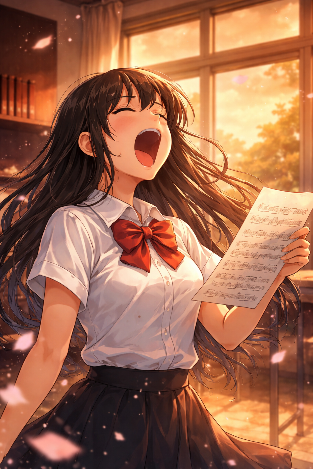 夕焼けに染まった教室の真ん中で、一人の女子が歌っていた。